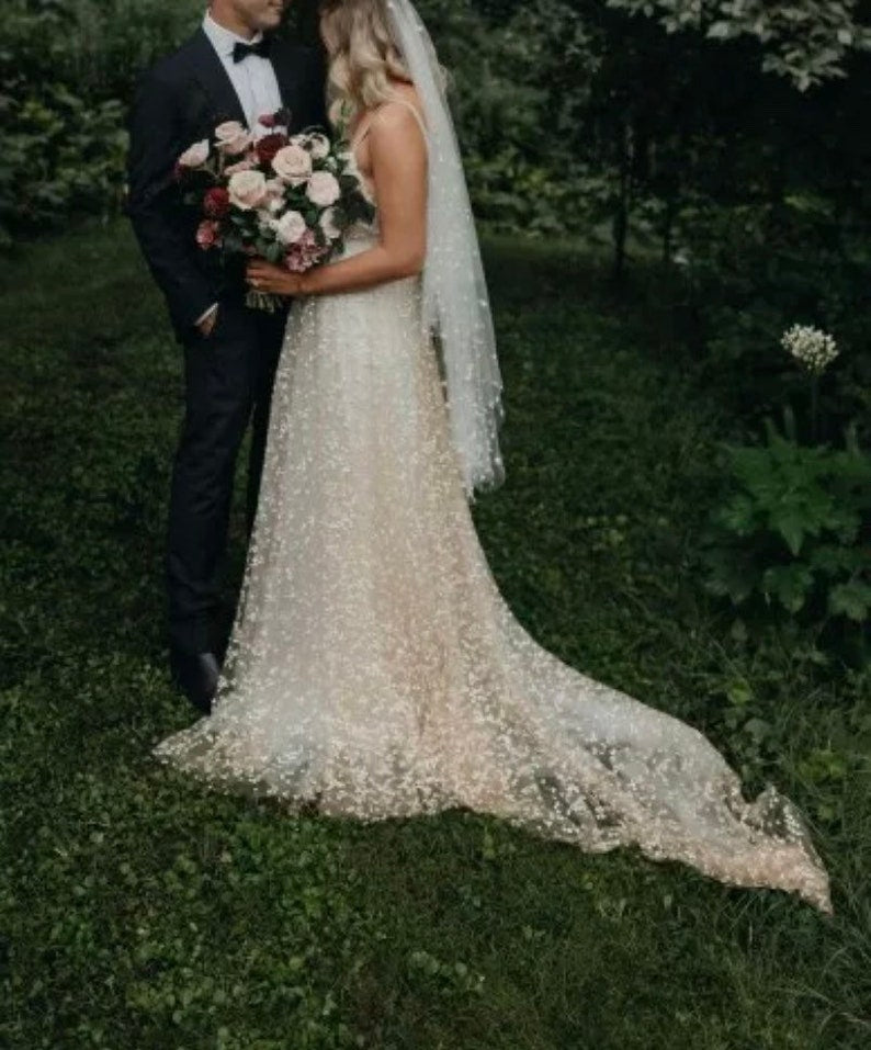 Experience the allure of exclusivity with the STARS WITH CAPE wedding dress, a masterpiece designed for the modern bride seeking both elegance and individuality. This feminine gown redefines bohemian chic, crafted with impeccable attention to detail that sets you apart on your special day.