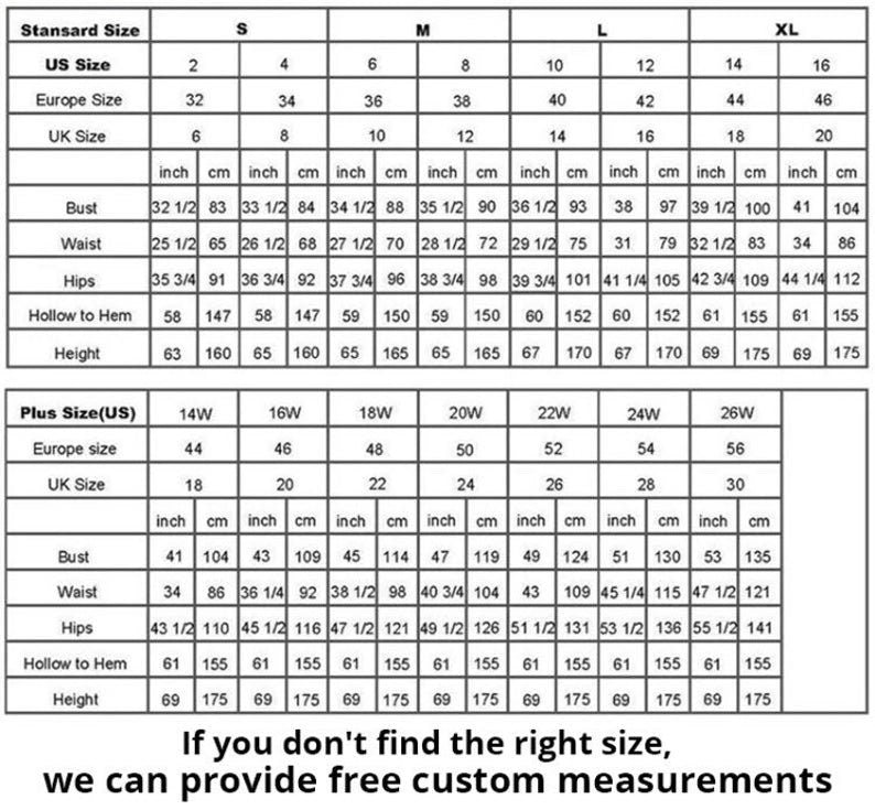 FOR DRESSES YOU CAN ALSO PROVIDE YOUR CUSTOM MEASUREMENTS DURING CHECK OUT OR BY CONTACTING US
