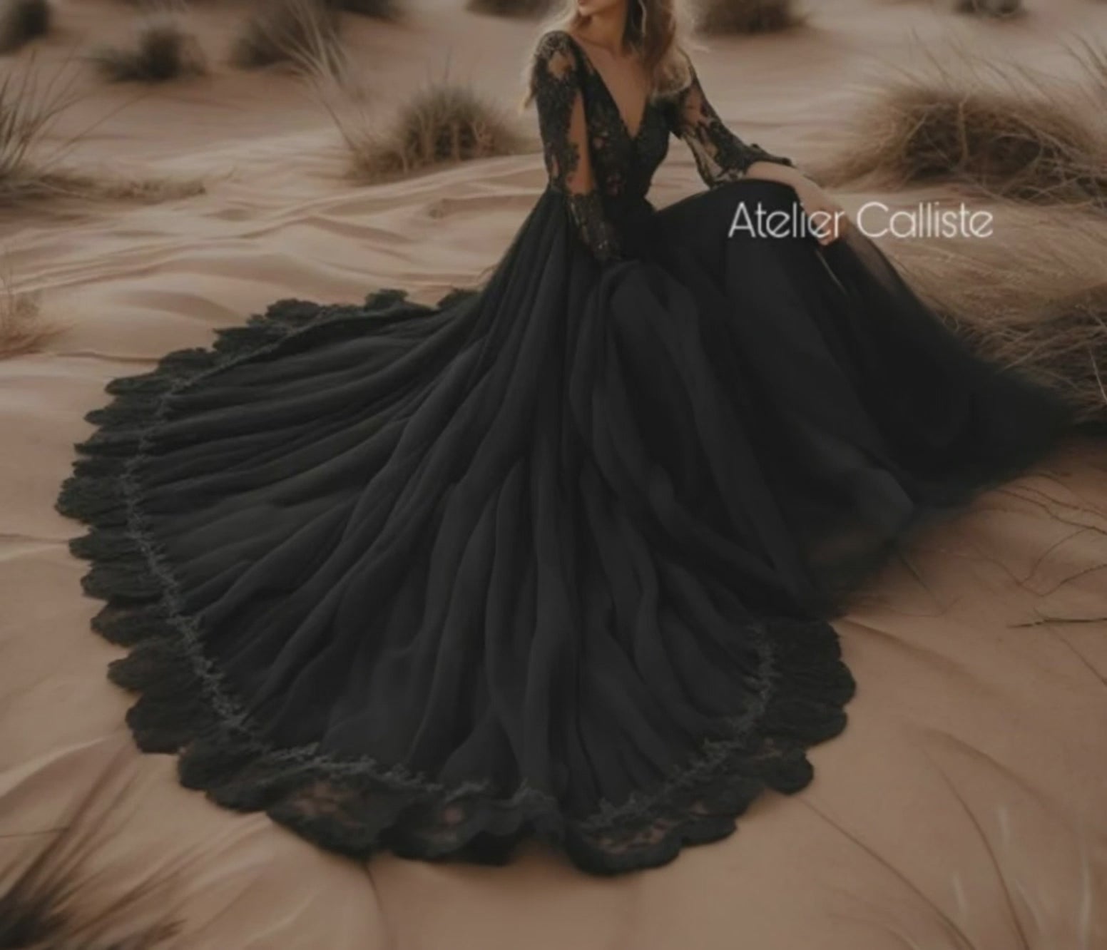 Exclusively crafted for the bold and unconventional bride, the CLOTHO BLACK wedding dress redefines gothic elegance with a striking blend of romance and drama. This unique gown embodies the essence of an alternative bridal fantasy, perfect for those who dare to live their fairytale with a dark, ethereal twist.