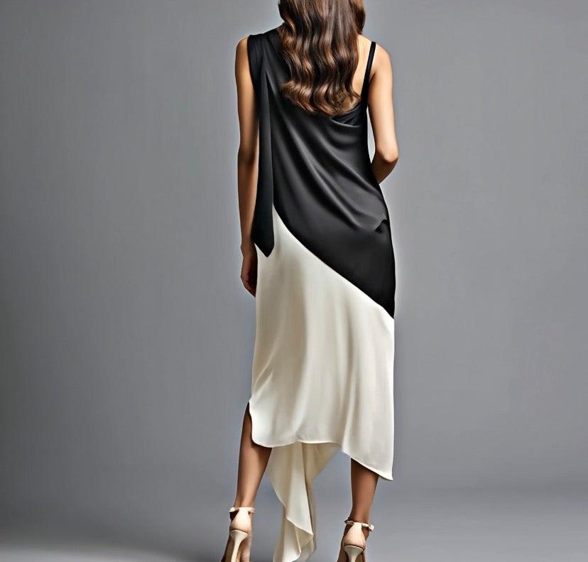 Demi black & ivory midi dress