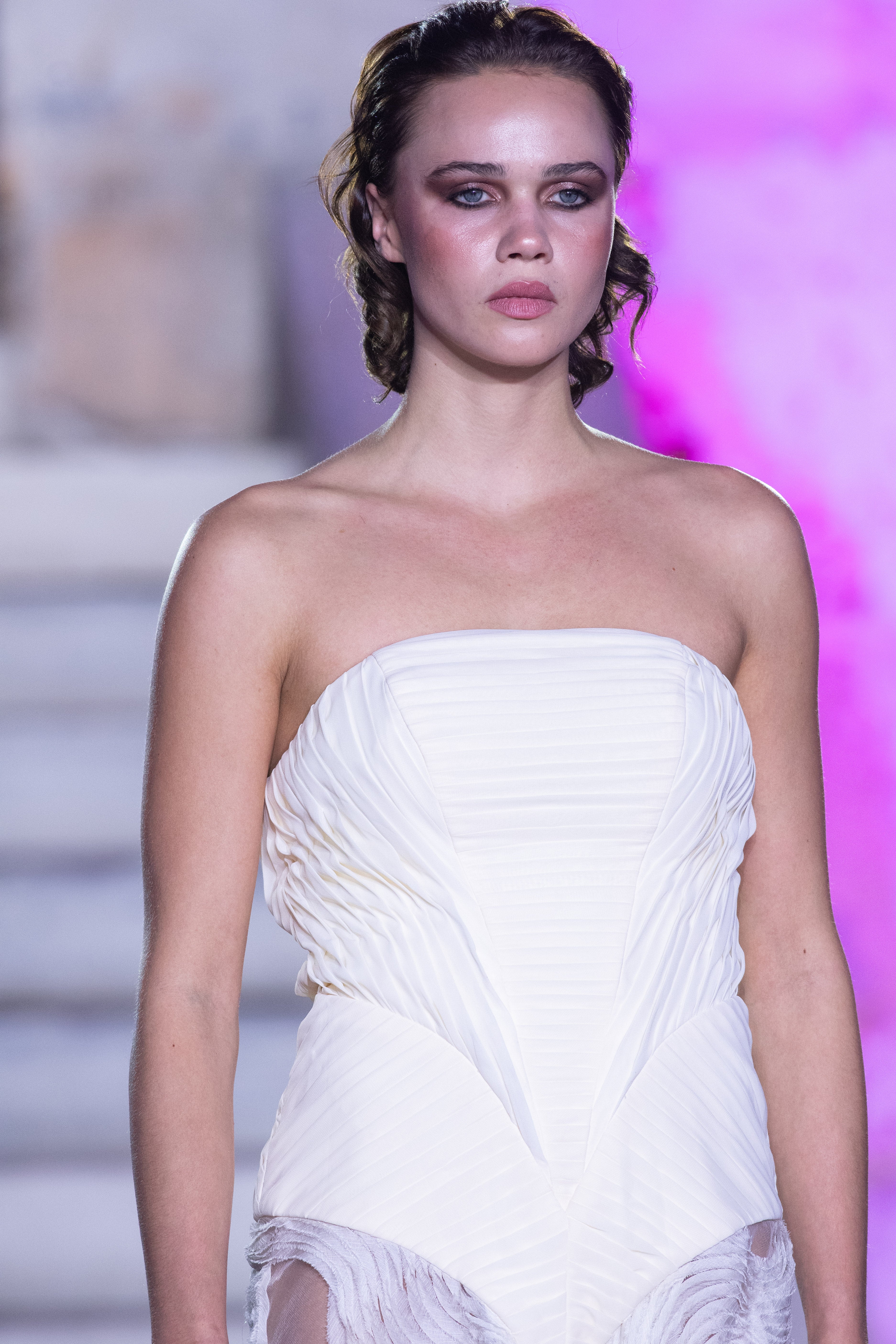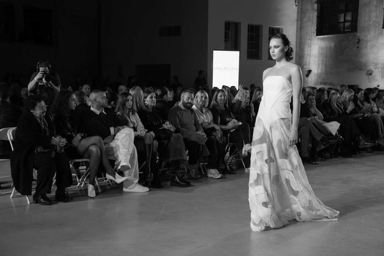 Part of the Awaken Your Myth Collection presented at ATHENS FASHION WEEK, the Sculpted Thalassa Gown draws its spirit from the ancient Greek personification of the sea — a symbol of depth, movement, and the quiet power of feminine myth. A celebration of craftsmanship, femininity and contemporary couture, the Sculpted Thalassa Gown transforms myth into movement and the runway into a moment of timeless romance.